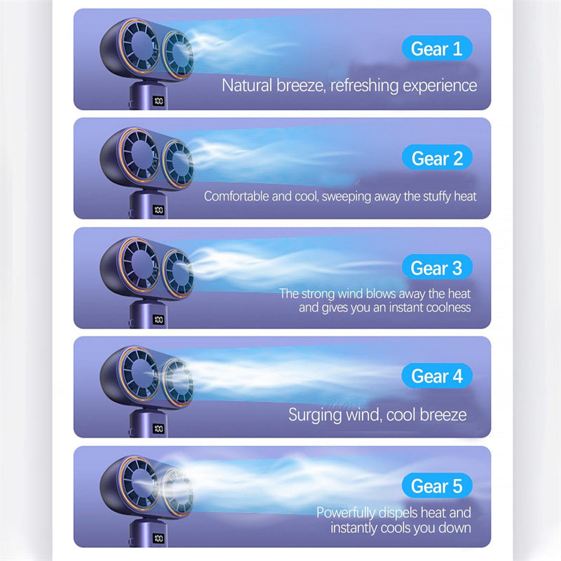 USB Handheld Mini Fan Foldable Portable Neck Hanging Fans 5 Speed USB Rechargeable Fan With Display Screen